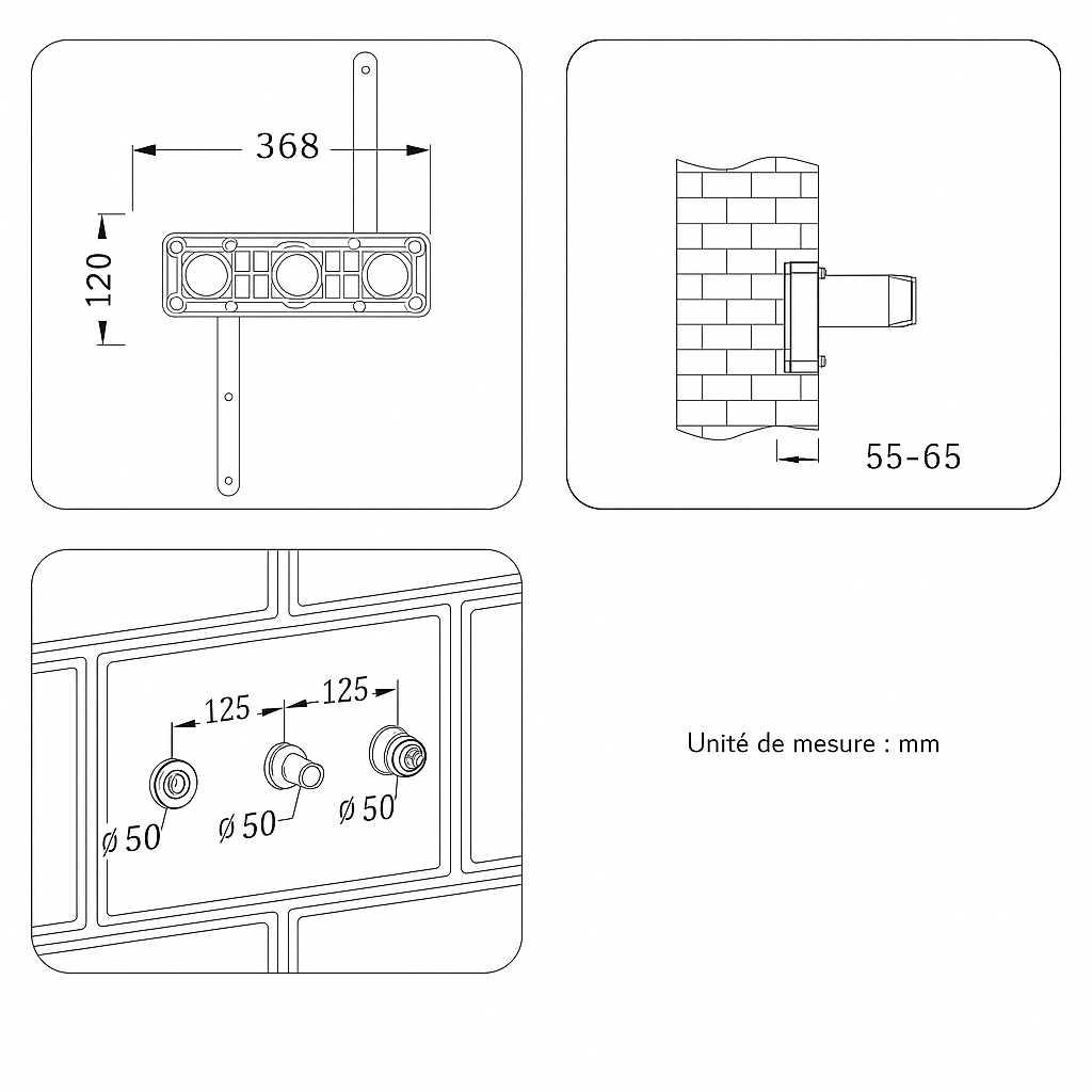 Nos robinets sont conçus pour s’adapter aux standards européens. Pour toute installation spécifique, contactez-nous avant votre achat.