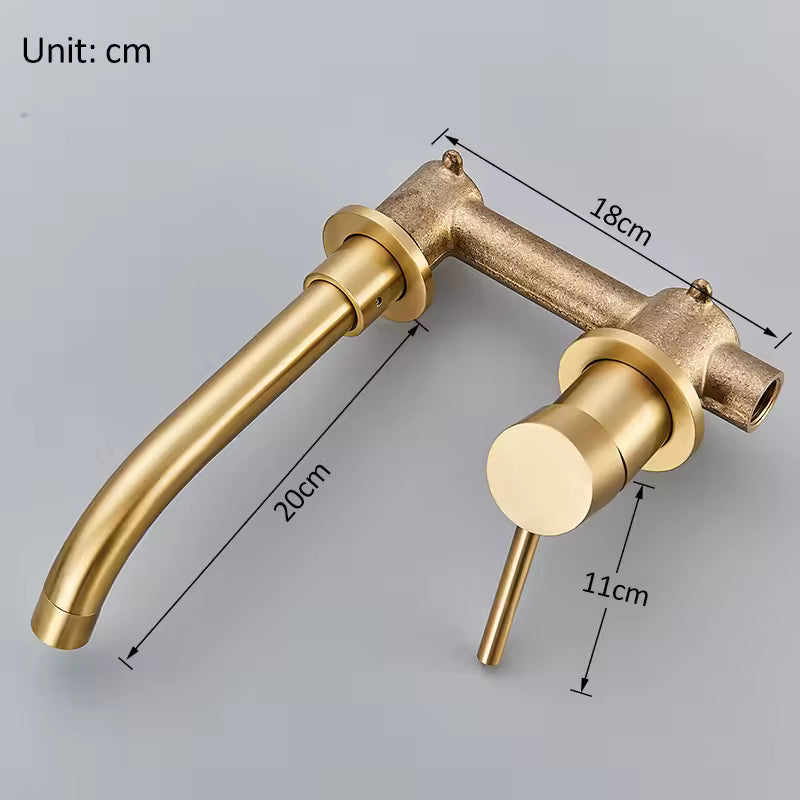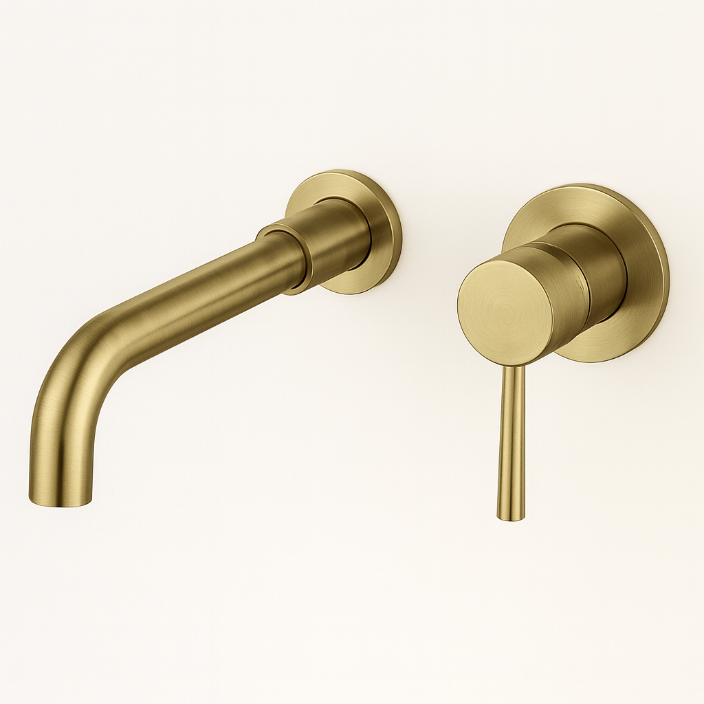 Mitigeur encastré pour salle de bain en laiton avec finition or brossé. Équipé d’une manette permettant de régler le débit et la température de l’eau.