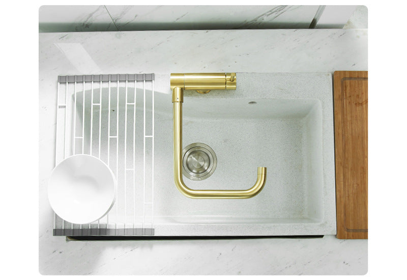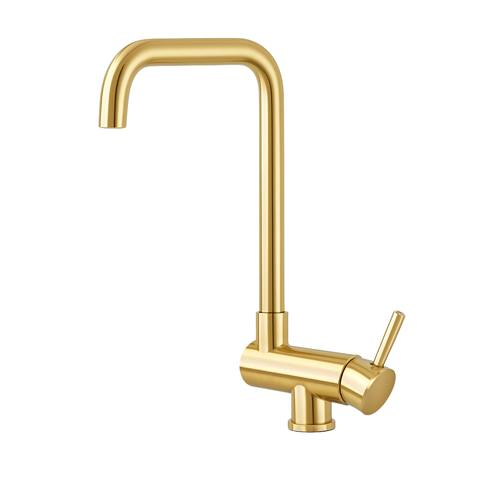 Le robinet est fabriqué en laiton massif et dispose d’une finition brossée conçue pour limiter les traces et faciliter l’entretien.